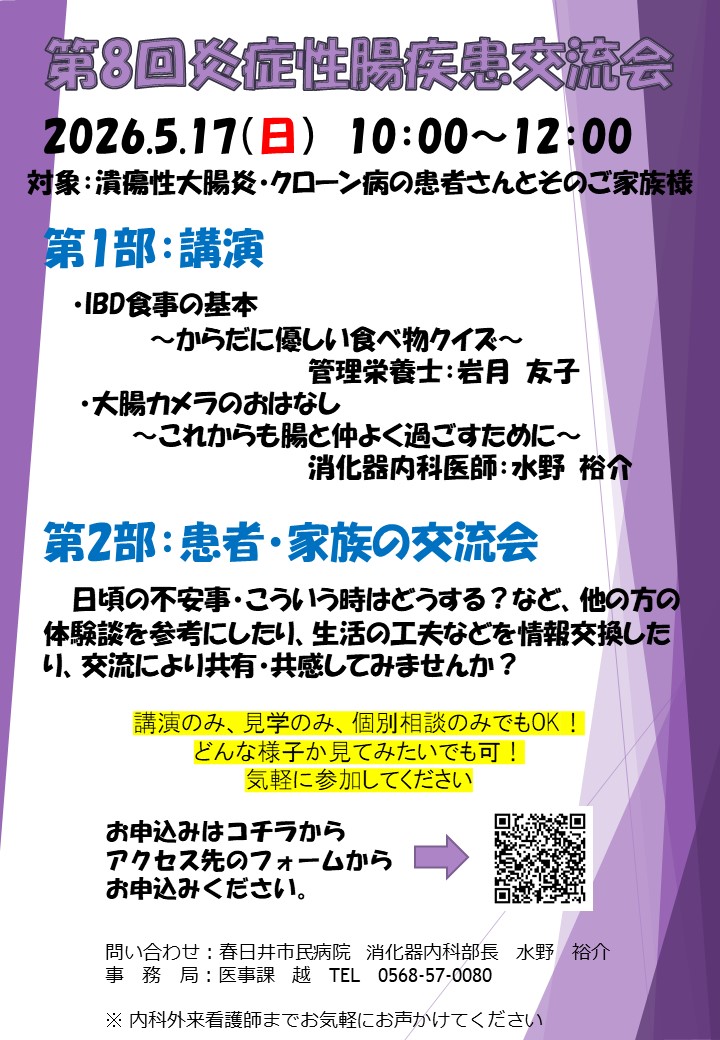 炎症性腸疾患の方とそのご家族の方同士が対話交流を図る会です。
